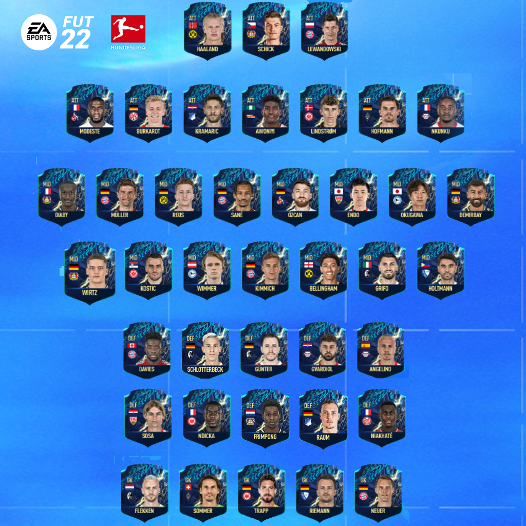 Danh sách những cầu thủ tham gia bình chọn đội hình 22TS của giải đấu Bundesliga