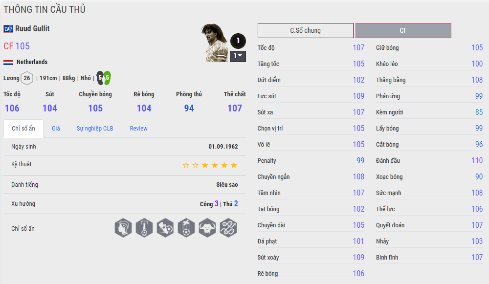 Ruud Gullit là một câu chuyện mà có lẽ sau này bạn sẽ kể cho con cháu mình nghe về một dạng cầu thủ có thể đá bất cứ đâu trên sân. Một hung thần thực sự với mọi hàng phòng ngự khi được xếp đá tiền đạo. Về cơ bản Gullit dễ chơi, dễ đá và cũng rất dễ ghi bàn khi ông hội tụ đầy đủ những gì tinh túy nhất của game bóng đá mô phỏng như Fo4. Mùa giải ICON và LN dĩ nhiên được đánh giá là tốt nhất. Nhưng CAP, BTB hay EBS vẫn được coi là vừa túi tiền với đa số người dùng hiện nay hơn cả.