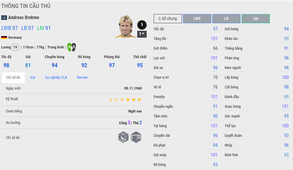 Một phương án nữa hiện đang được các game thủ Hàn ưa chuộng gần đây chính là Andreas Brehme. Huyền thoại nước Đức cũng bị hạn chế nhiều do lương cao, nhưng giờ đây thì những người dùng đã có thể tiếp cận đến ông nhiều hơn. Brehme LH hiện đang là phiên bản hot nhất.