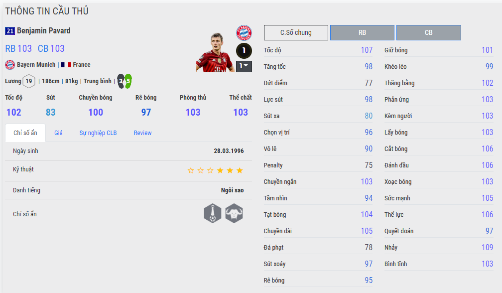 Cái tên đầu tiên được nhắc đến chính là Pavard 21UCL. cầu thủ này có tốc độ, chiều cao rất tốt và AI mùa 21UCL thì ít nhất còn dùng được trong 1 năm tới khi mà mùa 22UCL chưa ra mắt. Pavard có thể đá được cả vị trí RB tuy nhiên sẽ là cực hay nếu bạn kéo anh ta vào đá ở trung vệ, làm tôi liên tưởng đến trường hợp của Maldini NHD trước đây.