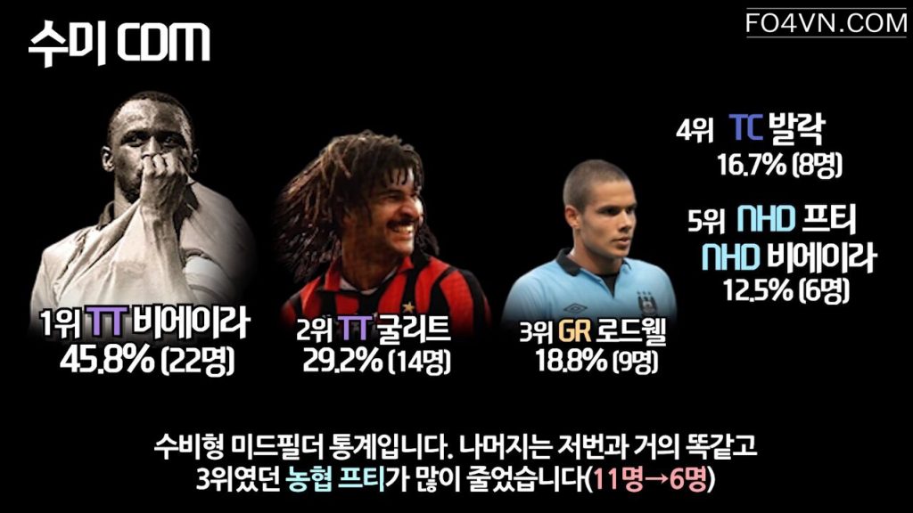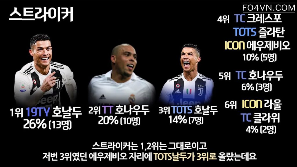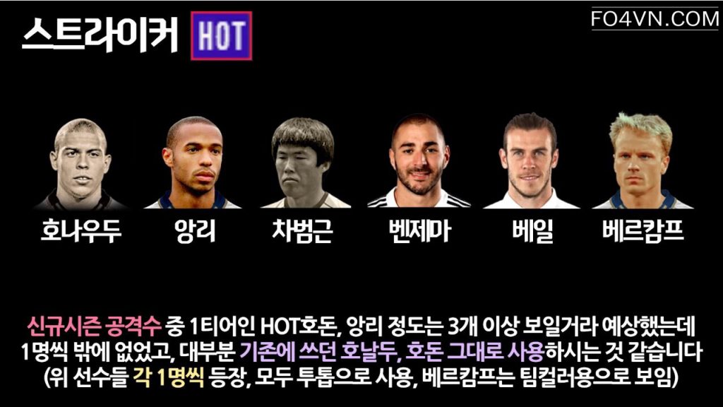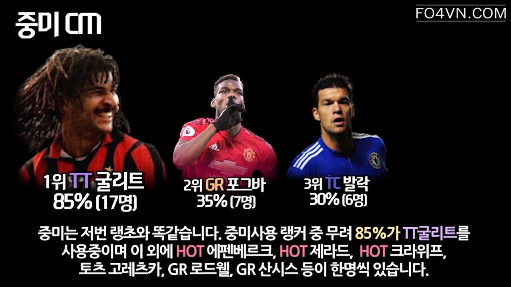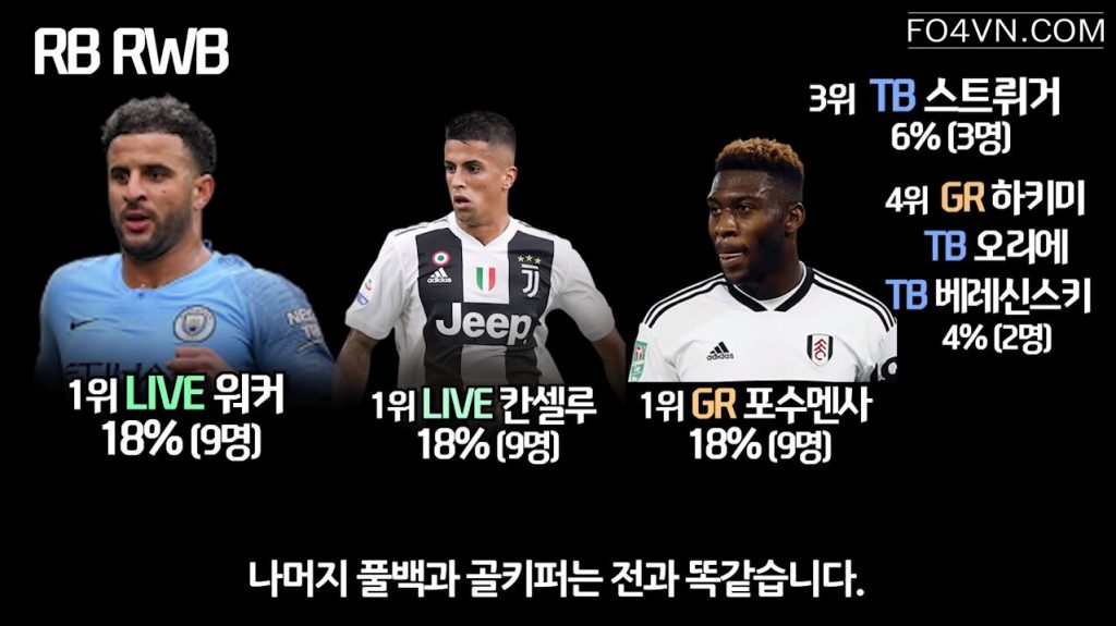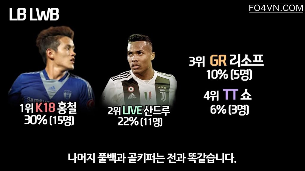 Mới đây, cộng đồng FIFA Online 4 Hàn Quốc đã bình chọn và đưa ra những cái tên sáng giá và đem lại hiệu quả cao ở rank xếp hạng hàn quốc. Ở mỗi vị trí, họ lại nhắc đến một cầu thủ có tính ổn định cao, và đem lại hiệu quả trong cách thức vận hành lối chơi.
