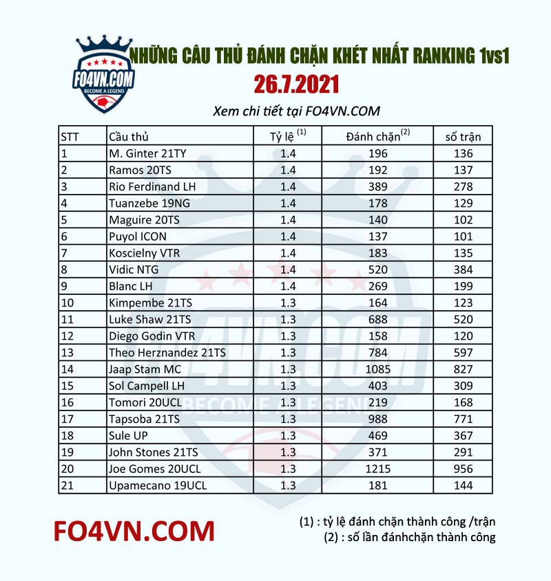 - Rất nhiều những cái tên trong danh sách này đến từ MU như Rio Ferdinand, Tuanzebe, Maguire... Có thể thấy hàng phòng ngự của MU ngày càng chất lượng ở trong Fo4. Những tin đồn về việc MU được buff ngầm cũng không phải là không có cơ sở