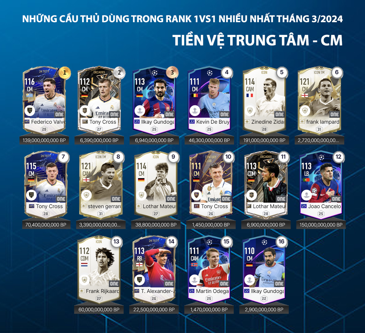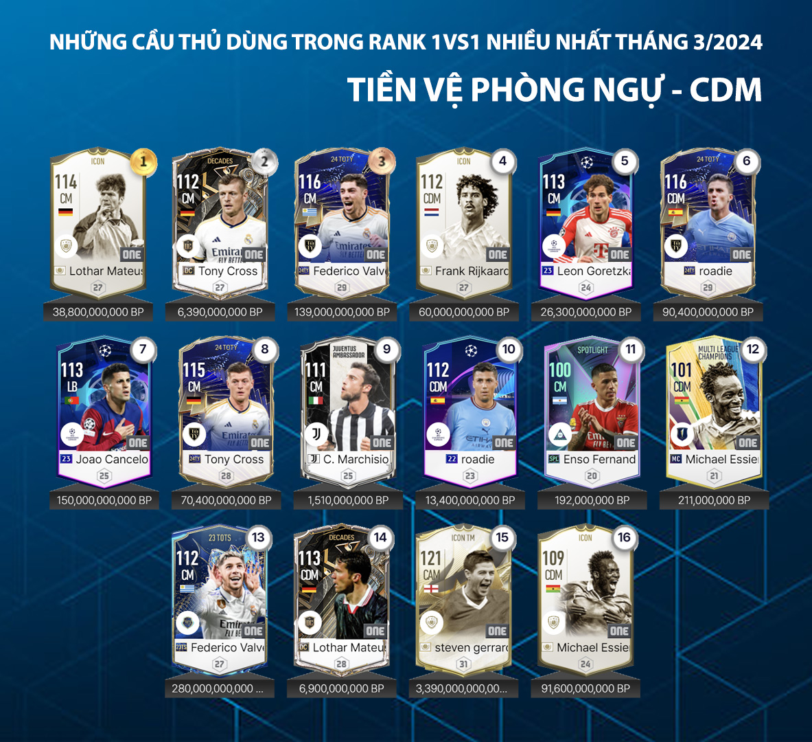 Tiếp tục với series những cầu thủ được dùng nhiều nhất trong FC Online tháng 4/2024, vị trí tiền vệ là vị trí tiếp theo được quan tâm lúc này. Đây được coi là vị trí chủ chốt trong việc xây dựng và định hình lối chơi cho team color của bạn.