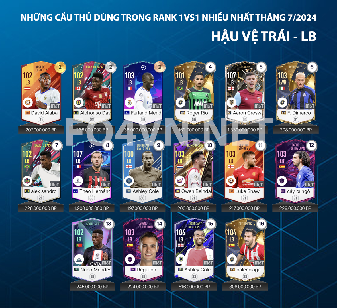 Vậy đâu là những cái tên đáng để các HLV đầu tư và được sử dụng nhiều trong tháng 7 vừa qua ở vị trí hậu vệ và thủ môn, hãy cùng fo4vn.net tìm hiểu ở bài viết dưới đây