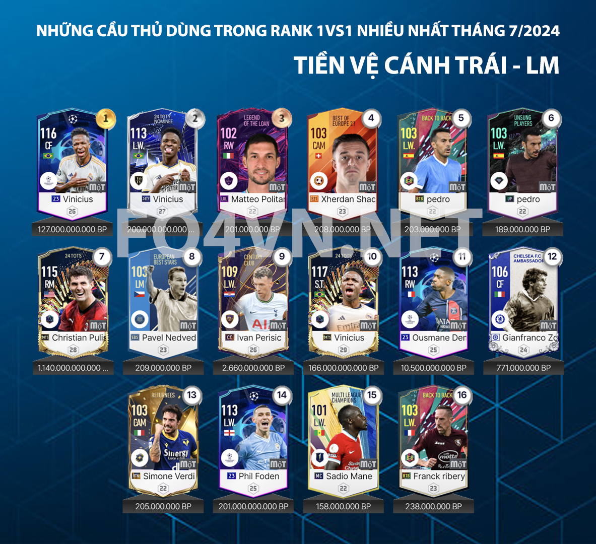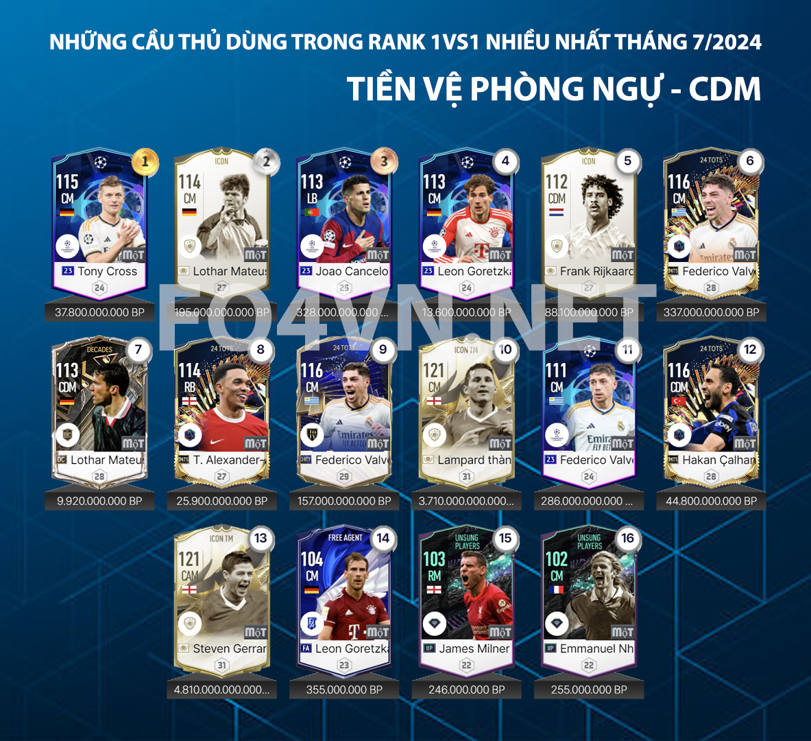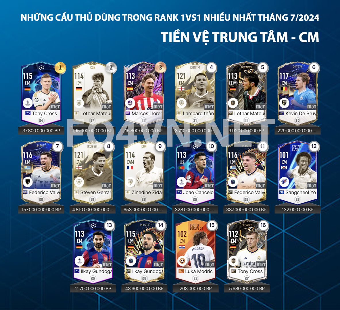 Vậy tháng 7 vừa qua, đâu là những cái tên tiền vệ hiệu quả và được tin dùng bậc nhất trong FC Online ở từng vị trí, hãy cùng fo4vn.net tìm hiểu ở bài viết dưới đây