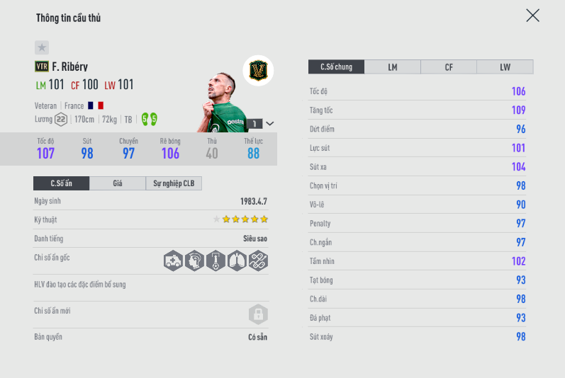 Tiền đạo, tiền vệ nổi tiếng của nước Pháp trong suốt thập niên 2010 là mùa giải gần như duy nhất mà anh thể hiện một Ribery sát với ngoài đời nhất, với hai chân 5/5 và khả năng xuyên phá cực mạnh. Bạn khó có thể đòi hỏi gì hơn ở anh.