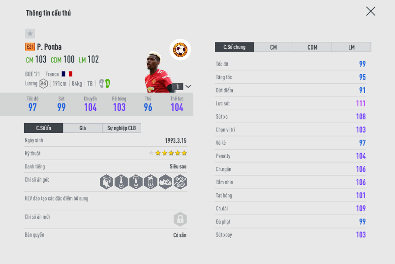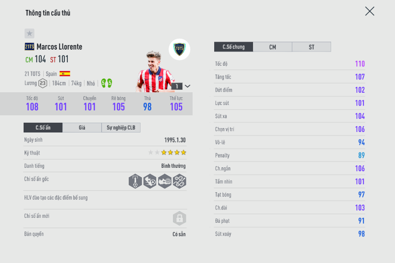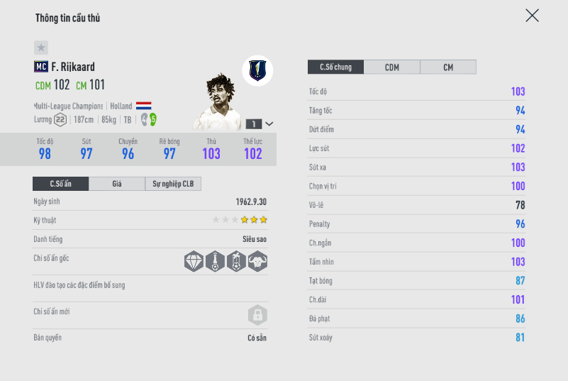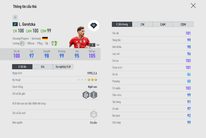 Phiên bản năng cấp tương đối hoàn hảo cho Goretzka ở vị trí CDM với thể hình trung bình. Còn nhớ trước đây, Goretzka TB từng làm mưa làm gió một thời ở rank xếp hạng bởi sự hiệu quả cả về tấn công lẫn phòng ngự.