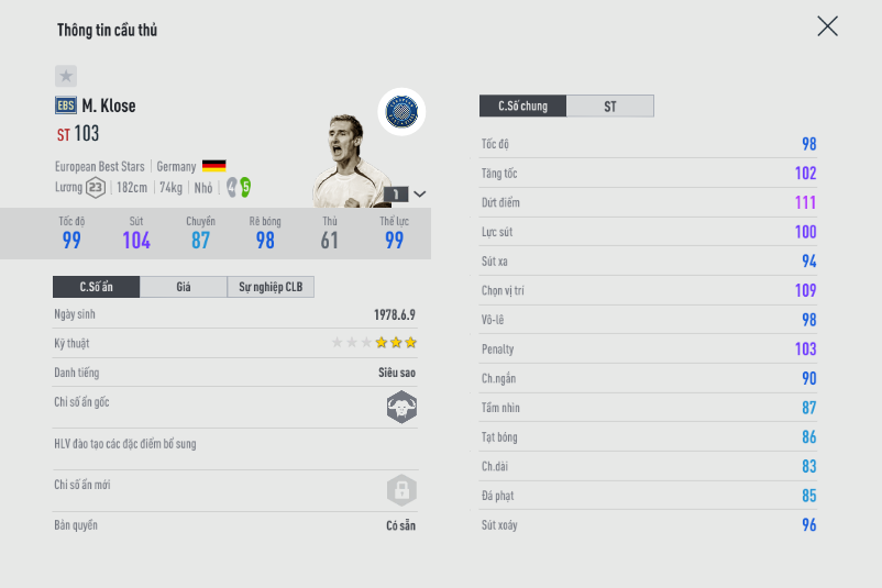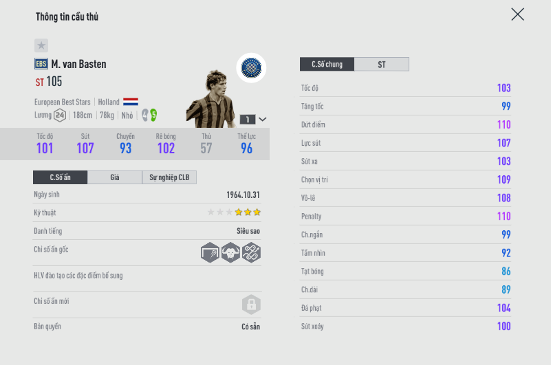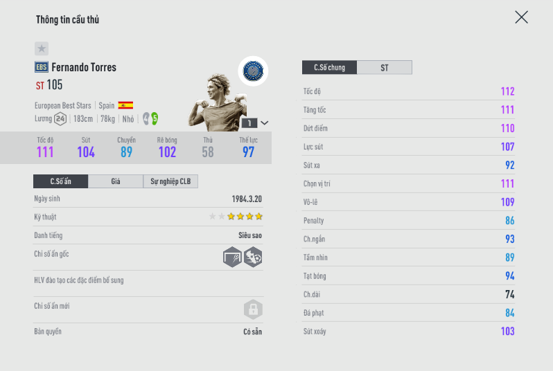 Cầu thủ mệnh danh là cân mọi meta, mùa sau mạnh hơn mùa trước và chưa có giới hạn dừng lại. Bạn đừng quên anh ấy đá được mọi vị trí trừ thủ môn nhé. Kéo lên ST và cảm nhận độ bá của một thân hình 1m9 nhưng có tốc độ của Torres nhé.