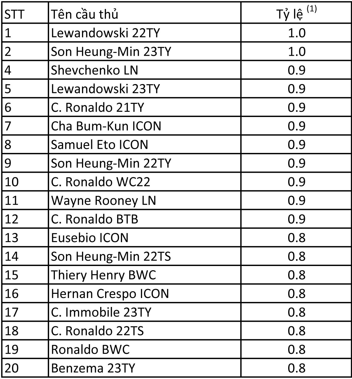 Ngoài hai cái tên Eusebio và Cha Bum Kun đã được thẩm định chất lượng thì Crespo, Eto cũng góp mặt trong danh sách này là một dấu hỏi lớn, phải chăng đó là dấu hiệu cho thấy hai ICON này chuẩn bị được buff 2 chân 5/5 hay chăng và các HLV của Hàn Quốc đã ôm hàng trước khi các cầu thủ này tăng giá.