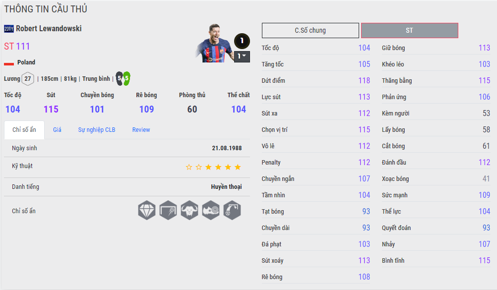 Tiền đạo người Ba Lan vẫn là cái tên được nhiều HLV tin dùng nhất bởi khả năng dứt điểm uy tín, không cần quá cầu kỳ nhưng các thủ môn vẫn rất khó để cản phá được. Nếu như ở các tháng trước chúng ta có khá nhiều mùa giải của Lewandowski góp mặt thì giờ đây chỉ còn hai cái tên là 22TY và 23TY.