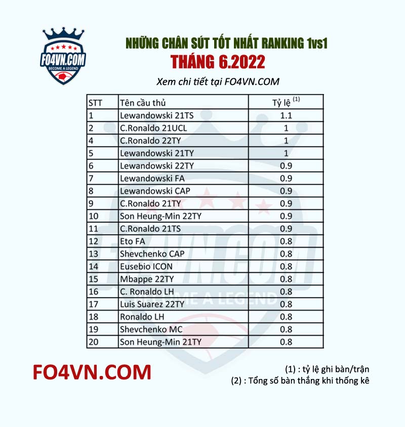 Chúng ta cùng điểm qua những chân sút tốt nhất tháng 6 trước khi mùa giải 22TS chính thức đổ bộ vào ngày 30.6 tới đây. Có lẽ sau tháng 6 này nhiều cầu thủ trong danh sách dưới đây sẽ bị đánh bật khỏi top để nhường chỗ cho loạt thẻ mời. Chấm dứt sự 1 năm thống trị của 21TS