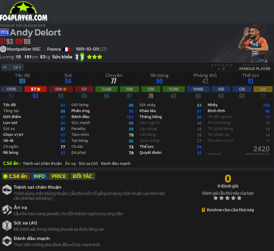 Một trong những cầu thủ có khả năng không chiến cực kì tốt. Anh là mẫu tiền đạo nhận bóng và đánh đầu điển hình. Khả năng chọn vị trí tốt cũng như dứt điểm tốt cùng chỉ số ẩn Đánh đầu mạnh hứa hẹn anh là một trong những Top tiền đạo không chiến hiệu quả.