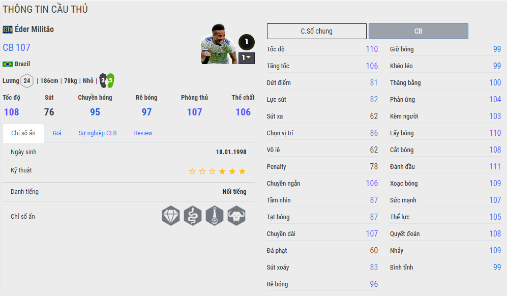 Giờ đây Van Dijk cũng đã có tốc độ lên tới 108, còn Militao đã đạt 110 những con số mà bất cứ các tiền đạo nào cũng phải ngán ngẩm, một sự nâng cấp tương xứng dành cho các trung vệ trong gameplay hiện nay khi mà một thời gian rất dài người ta chỉ quanh quẩn với Varane hay Ramos, Maldini vì những trung vệ này có tốc độ ít nhất là đủ để đỡ thọt trước các tiền đạo trong game.