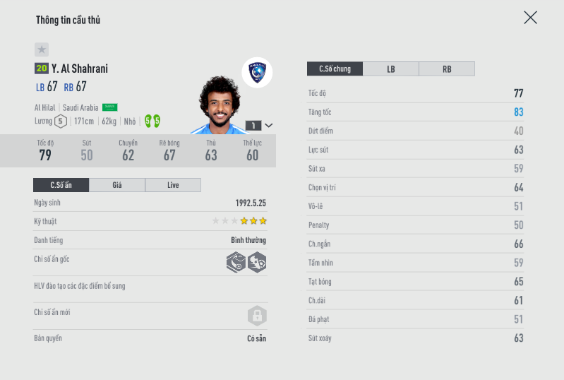 Cầu thủ người Ả rập Xê-út với hai chân 5/5 khá hiếm hoi ở vị trí cánh trái, ngoài khả năng tạt tốt, Shahrani còn rất lực trong việc chồng biên
