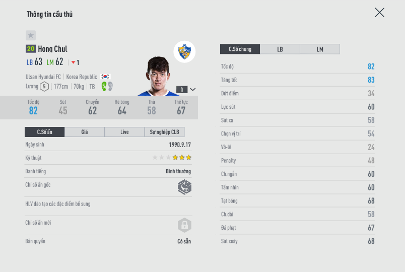 Ở Hàn Quốc, bên cạnh Theo Hernandez thì Hong Chul như một LB quốc dân thứ 2 vậy, có mặt trong đội hình của những nhà vô địch WhizFox đã cho thấy độ tin cậy của cầu thủ này, tốc độ tốt, tạt bóng tốt. Thích hợp với lối đã chồng biên tạt bóng
