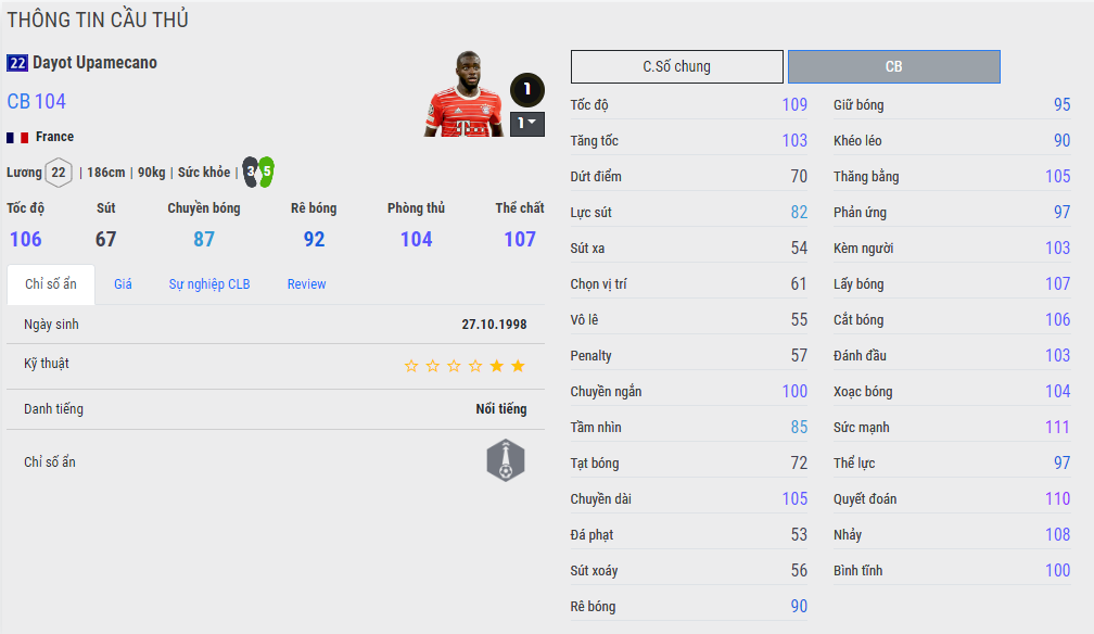 Trung vệ của Bayern Munich, năm nay hùm xám Bavaria có đội hình khá đồng đều và cơ hội đi sâu của họ là rất cao. Upamecano qua có cũng sẽ được hưởng lợi khi cầu thủ này luôn được ra sân khá đều đặn ở giải đấu này. Chiều cao cùng cân nặng và tốc độ tốt là những thứ mà bất cứ HLV nào cũng cần ở gameplay hiện tại
