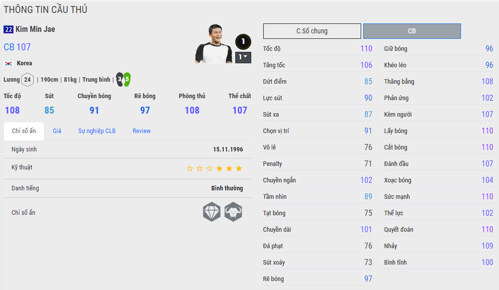 Cầu thủ người Hàn đang chơi cực ấn tượng tại Series A trong màu áo của Napoli, ít người tin rằng một hậu vệ châu Á lại có thể chơi tốt ở trời Âu như vậy. Thậm chí Kim Min Jae lại có chỉ số rất cao ở mùa giải 22UCL. Việc chỉ phải đối đầu với Frankfurt khiến cho cơ hội đi tiếp của Napoli là khá cao và qua đó cũng mở khả năng + thêm chỉ số cho hậu vệ này.