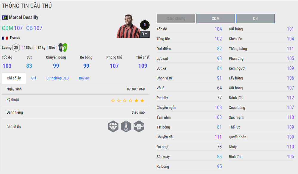 Tuy nhiên khi chơi Marcel Desailly thì người chơi cần có một CB tốc độ cao bọc lót cho huyền thoại này, bởi thực tế thì Desailly khá chậm và có thể bị thất thế trong vài tình huống tỳ đè.