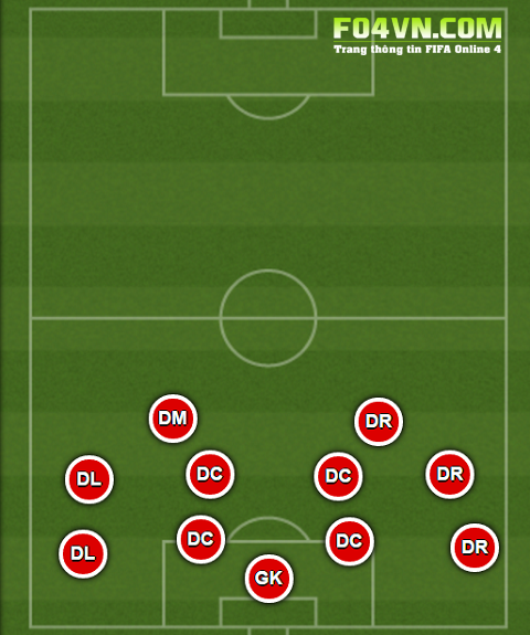 Khi cần phòng ngự, chúng ta sẽ dồn toàn lực phòng ngự trên 1/4 phần sân nhà. 11 cầu thủ, kể cả hai tiền đạo cũng phải lùi về để hỗ trợ từ xa. Với đầy đủ quân số bên phần sân nhà thì chắc chắn đây là cách phòng ngự có chỉ số an toàn cao nhất.