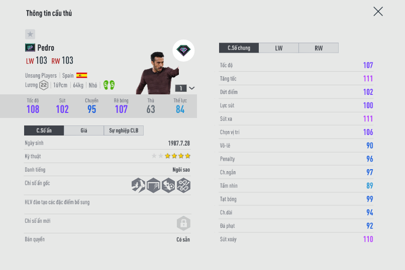 Pedro mùa UP thời gian gần đây nổi lên như 1 hiện tượng nơi hành lang cánh phải. Khả năng rê bóng, bứt tốc quãng ngắn của anh là rất tốt cùng với đó là sự lắt léo đầy khó chịu đối với hàng thủ đội bạn. Ở mùa giải này, khả năng sút xa cũng như ZD của Pedro được cải thiện khá nhiều trong FIFA Online 4 khiến anh là khẩu pháo tầm xa tương đối nguy hiểm cho đối thủ.