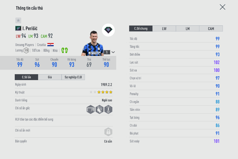 Perisic hiện tại đang là cái tên được ưu tiên sử dụng cho những team color như Bayern, Inter, Dortmund....