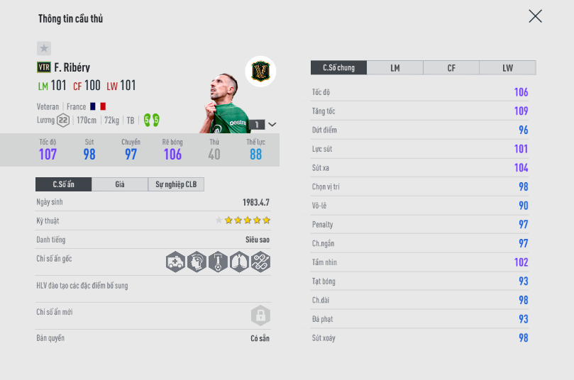 Ribery phù hợp cho những ai thích lối chơi tốc độ, thoát biên nhanh, di chuyển tấn công đa dạng và xâm nhập phối hợp tốt cùng các đồng đội.