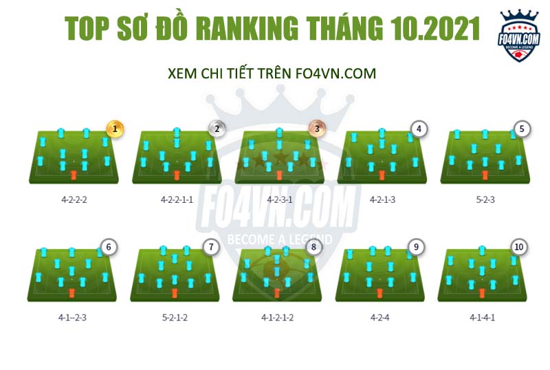 Sự thống trị của 4222 và 42211 vẫn gần như là tuyệt đối và có lẽ chỉ có thay đổi meta mới giúp có sự thay đổi trong lối chơi mà thôi. Sơ đồ 4123 đã tụt xuống tận vị trí thứ 6 sau nhiều tháng. Nếu nhìn vào bảng xếp hạng trên các bạn có thể dễ thấy 5 sơ đồ phía dưới đều là những sơ đồ thiên về tấn công hơn là phòng thủ. Đây cũng là điều dễ hiểu khi đấu trường xếp hạng luôn rất khốc liệt
