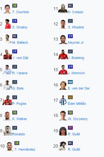 - Van Dijk 19ULC cùng với Bale đã trở lại top. Vieira vẫn tiếp tục vắng bóng.