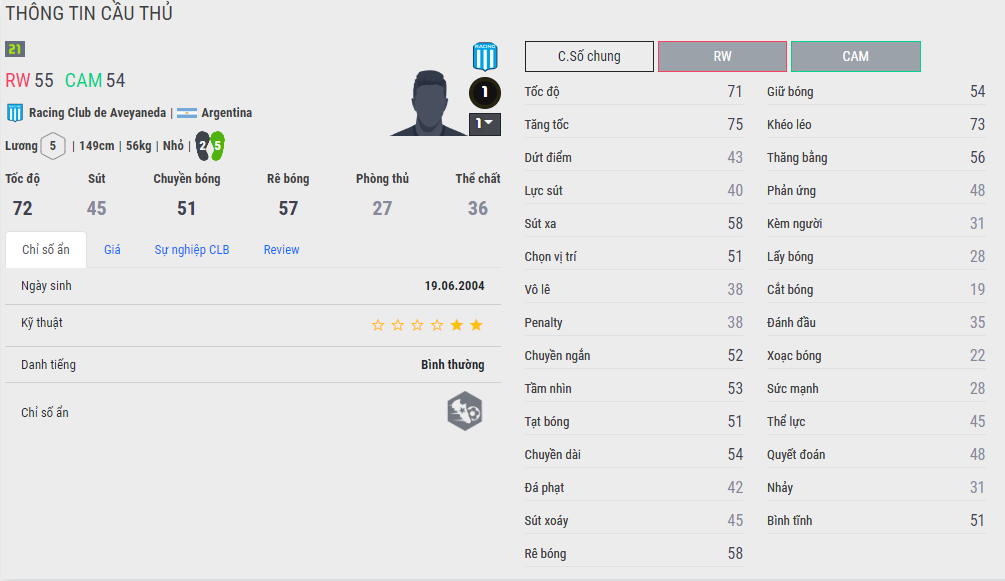 Argentina luôn nổi tiếng với các chú lùn đá bóng, họ rất nhiều tài năng nhưng lạ thay lên tuyển thì toàn chả mấy cầu thủ cao quá 1m80 cả. Và không ngạc nhiên họ sở hữu một cầu thủ thấp nhất trong game, chỉ có 1m49 mà thôi. May mắn là anh chàng này khá nặng cân với 56kg, nhưng vẫn không được set vào thể hình trung bình, mà bị đặt là thể hình gầy, nên trên sân nhìn như cái kẹo luôn