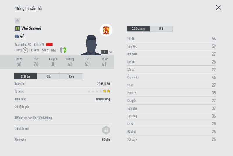 Cái tên này thuộc về một cầu thủ người Trung Quốc tên là Wei Suowei từ Trung Quốc. Sinh 2005 tức là năm nay anh ấy vẫn đang học cấp 3 nhưng đã tham gia thi đấu chuyên nghiệp rồi đấy. Và hơi buồn cười là cầu thủ này có chân 5 chân 1.