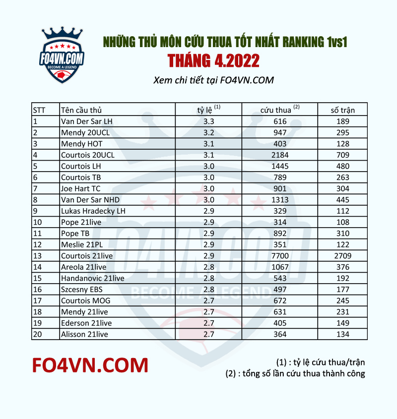 - Courtois vẫn là thủ môn được dùng nhiều nhất do sở hữu sải tay tuyệt vời nhất hiện tại, thêm vào đó là anh được buff hai team cực mạnh là Chelsea và Real