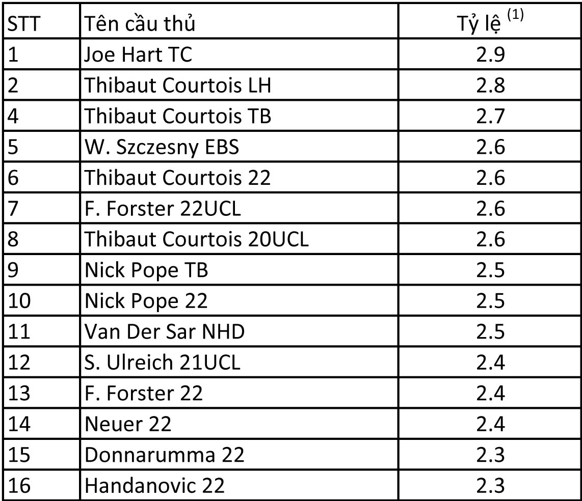 Khu vực nửa dưới của bảng xếp hạng đều là những cái tên đến từ mùa giải 22live. Riêng trường hợp của Van Der Sar hiện chỉ còn mùa NHD của huyền thoại này được dân tình ưa dùng, mức lương thấp độ tin cậy cao là những gì mà người chơi càn ở Van Der Sar.
