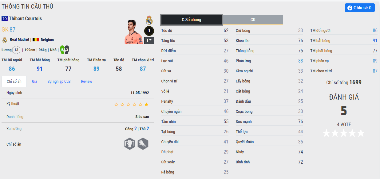 Thủ thành quốc dân này không còn điều gì để diễn tả được độ phổ biến của anh trong game. Chúng ta vẫn gọi Gullit FO4 nhưng nếu nhà phát hành làm một động thái thống kê đầy đủ chắc chắn Courtois mới là cầu thủ xuất hiện nhiều nhất trong game.