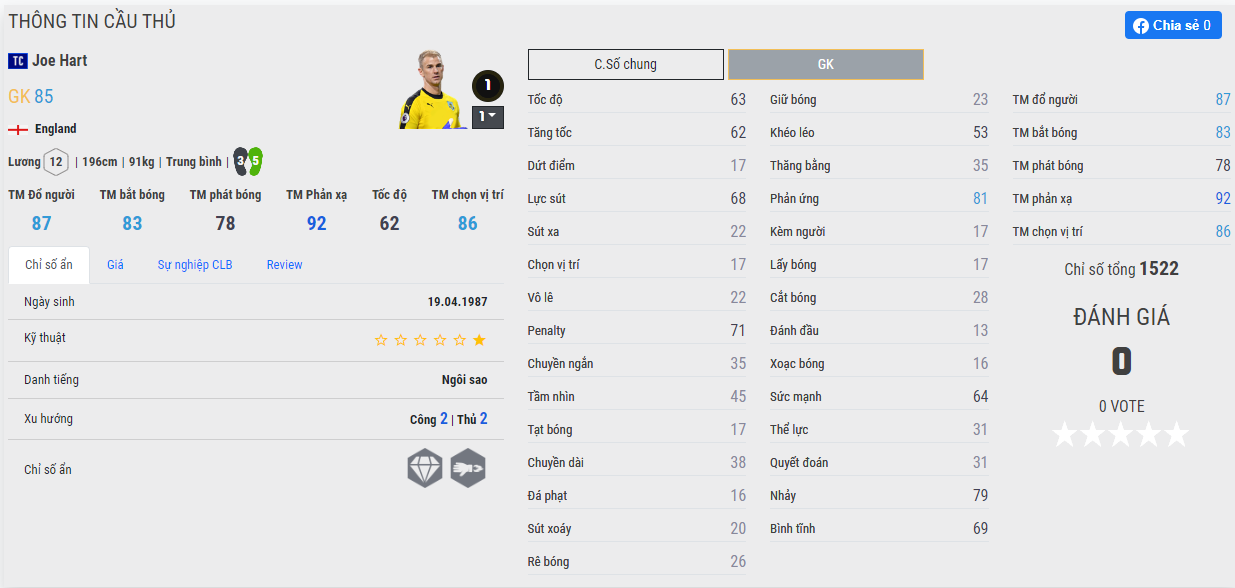 Joe Hart TC bắt khá ảo, thủ thành này rất giỏi trong việc đấm bóng thay vì bắt dính trong game. Nhưng đối với các cú sút hiện nay thì đấm bóng sẽ ổn hơn là cố gắng bắt trái bóng.