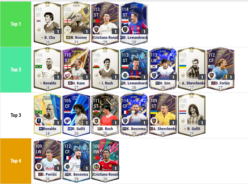 Rooney cùng với huyền thoại Cha Bum Kun mùa ICON trở thành hai cầu thủ có khả năng ghi bàn tốt nhất, bên cạnh đó là Ronaldo CC và phiên bản mới của Lewandowski. Có thể nói là tương tự như mùa giải 23TY và 23TS, mỗi khi ra mùa mới thì Lewandowski luôn tạo ra một cơn sốt mới, mặc dù không nằm trong top 11 cầu thủ hàng đầu những kỹ năng dứt điểm và tận dụng cơ hội của siêu sao người Ba Lan vẫn là rất đáng ngờm.