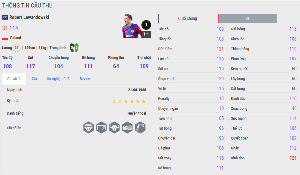 Hiện tại tiền đạo người Ba Lan vẫn là một trong những cây săn bàn hàng đầu trong FC Online, cái mà Lewandowski thiếu có lẽ chỉ là tốc độ mà thôi, khi mà lối chơi và tuổi tác không cho phép anh có thể nhanh hơn được. Nhưng không sao, khả năng di chuyển không bóng như hack của Lewandowski là chìa khóa để mở ra mọi lối đi vào khung thành đối phương.