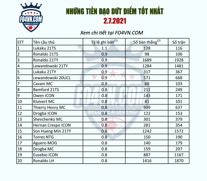 Việc thay đổi cơ chế vật lý của game, làm những cầu thủ to khỏe đã có chỗ đứng trong game hơn. Tuy nhiên sự thay đổi hiệu quả đến đâu thì trăm nghe không bằng mắt thấy, khi mà reivew giờ đã trở lên lỗi thời.Thì các thông số trên máy chủ chính là review chân thực nhất về các cầu thủ. Chúng ta sẽ đến với danh sách dưới đây