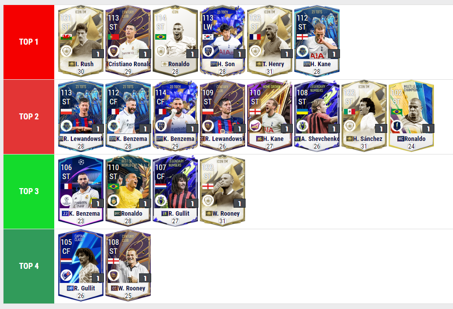 Cuối tháng 10 chúng ta chứng kiến sever Hàn Quốc update đầy đủ hết tất cả những ICON TM hiện còn bản quyền trong game. Rất rất nhiều cái tên được mong chờ đã xuất hiên nhưng rồi sau 1 tháng sử dụng và thử nghiệm thì có vẻ như người hâm mộ đã kỳ vọng quá nhiều. Thống kê những tiền đạo có khả năng săn bàn tốt nhất tháng 11/2023 vẫn là những cái tên quen thuộc, có chăng thứ hạng có một chút thay đổi do sự điều chỉnh gameplay từ phía nexon mà thôi.