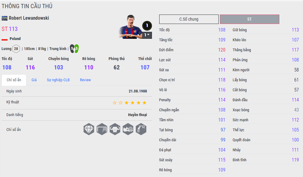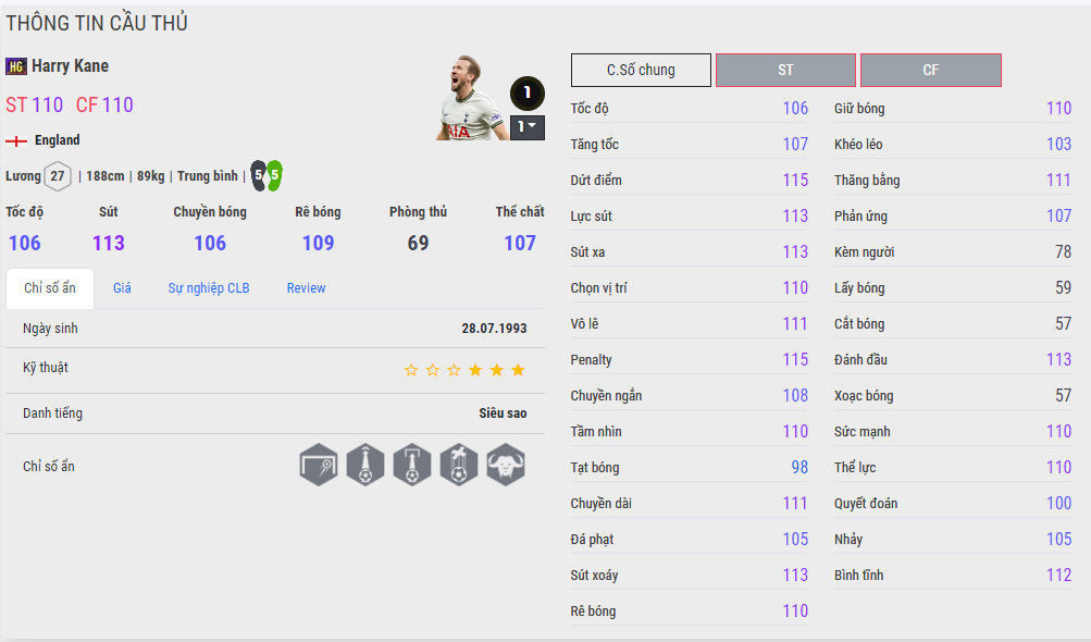Tiền đạo người Anh vẫn tiếp tục duy trì được thứ hạng của mình ở danh sách những tiền top tier 1 của FC Online. Tuy nhiên Kane HG đã có những cải thiện rõ rệt sau khi gameplay được fix lại. Với việc lối tấn công cutback đang ngày trở lên thịnh hình với gameplay 9.5 thì có vẻ như Kane càng khăng định được vị thế của mình nhờ khả năng chuyền bóng cực tốt, có thể nói Kane chính là tiền đạo toàn diện nhất hiện nay.