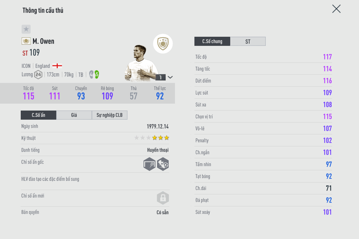 Thêm một tiền đạo với tốc độ cao chuyên bán hành cho các hậu vệ. Dù ít được chú ý nhưng có một sự thật là Owen ghi bàn rất đều đặn. Tốc độ là lợi thế giúp Owen thường xuyên có cơ hội đối mặt với các thủ môn, việc của bạn là làm sao dứt điểm cho chuẩn nữa thôi.