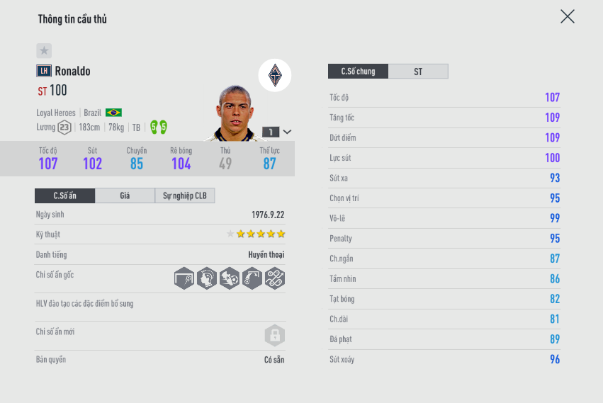 Chắc chắn đây là cái tên số 1, không phải bàn cãi, tuy nhiên cả hai mùa giải MC và LH đều khá tương đồng về tỷ lệ ghi bàn cũng khả năng phối hợp đồng đội. Hiện tại mức lương sắp nâng lên 200. Bạn hoàn toàn có thể sắm cho mình mùa giải MC, tuy nhiên LH cũng là quá đủ dùng rồi.