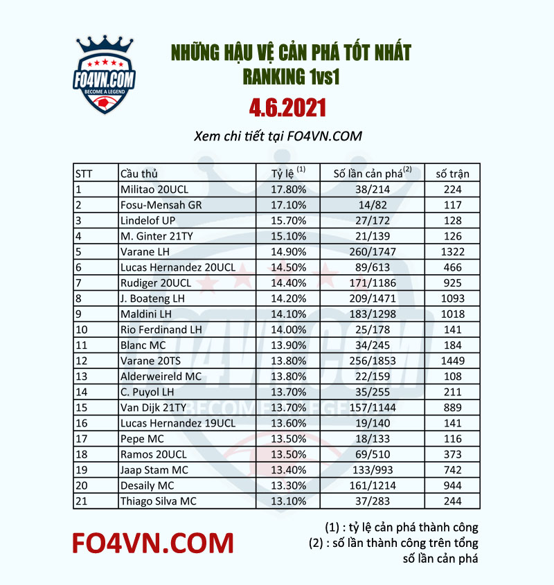 Tiếp tục với những trung vệ tốt nhất game, lần này là tiêu chí cản phá. Một điều cực kỳ quan trọng với mọi trung vệ trong game hiện tại.