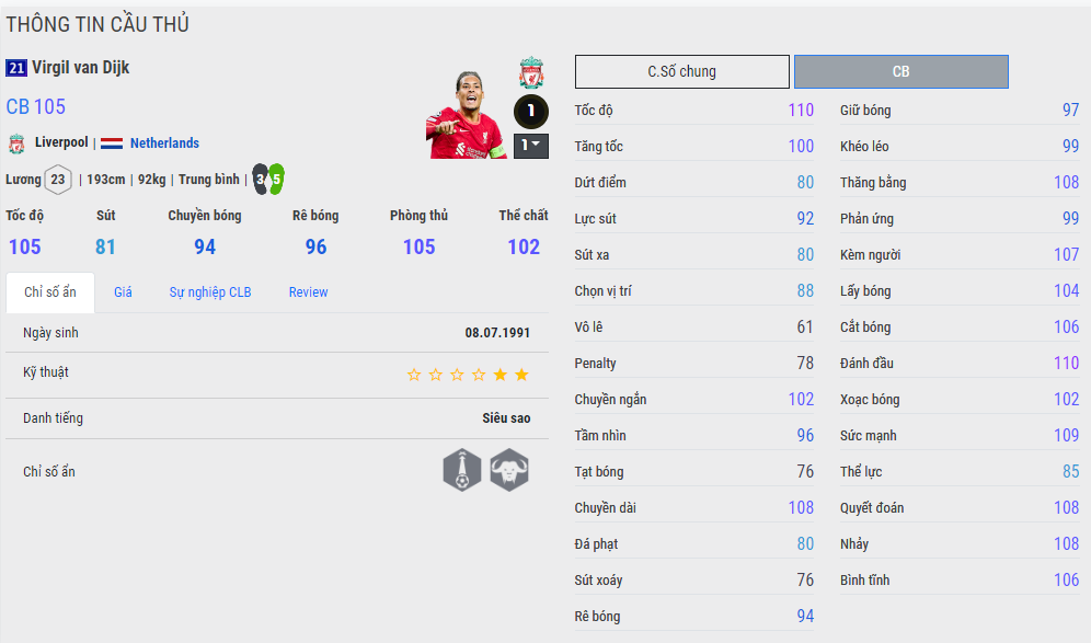Rất lâu rồi chúng ta không nhìn thấy Van Dijk trong vai trò một cầu thủ cắt bóng thuộc hàng top game ở bảng xếp hạng hàng tháng, tuy nhiên tháng 3 có lẽ là một ngoại lệ với trung vệ của Liverpool khi mà anh góp mặt tới 2 mùa giải là 21UCL và MC trong danh sách này. Nhưng cũng cần nhắc lại là đây là phiên bản +8 chứ không phải +1 đâu nhé các bạn. Bên Hàn thì mức thẻ +8 của hai mùa này giờ đây tương đối nhiều và điều đó cho phép Van Dijk đã hay lại còn hay hơn.