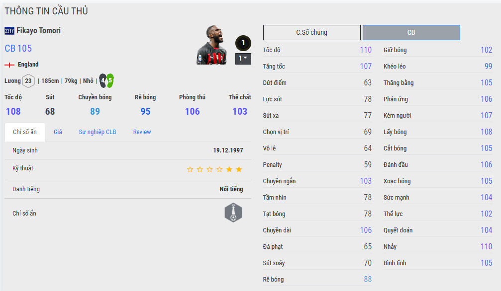 Militao 22UCL tuy có bị giảm 2 chỉ số tuy nhiên Ai của mùa này vẫn rất tốt, cho thấy rằng đôi khi chỉ số trong Fo4 này khá mơ hồ bởi ngay cả Tomori 22UCL chỉ có chỉ số 96 nhưng đá cũng vô cùng tốt.