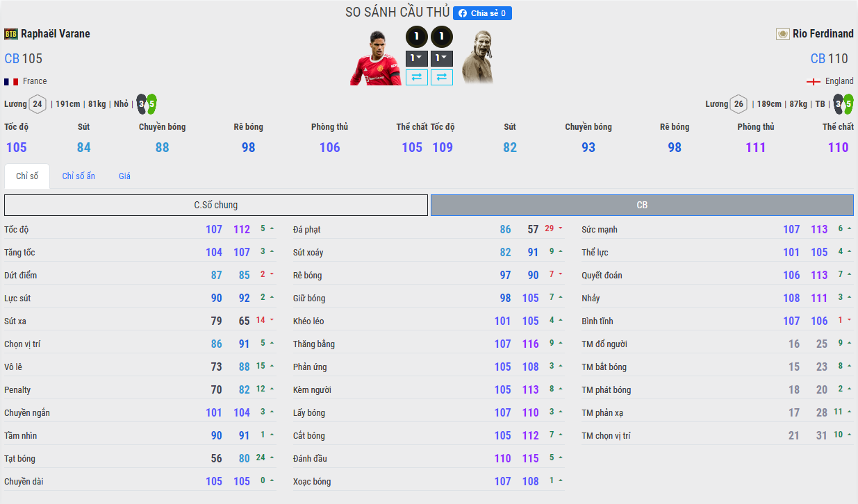 Có tới hai cái tên hiện thuộc team color Manchester United có mặt trong top 1 là Ferdinand và Varane. Sau một thời gian lặn sâu thì giờ đây Varane BTB đã trở lại và lợi hại hơn xưa. Câu chuyện về việc chọn ai cho vị trí hàng phòng ngự của các fan hâm mộ Mu giờ đây trở lên dễ dàng hơn rất nhiều. Rio Ferdinand qua hai tháng gần nhất đều thể hiện được một khả năng cắt bóng tuyệt vời, điều mà rất ít trung vệ duy trì được trong thời kỳ lạm phát chỉ số hiện nay, hơn nữa thẻ mùa giải của Ferdinand chỉ là mùa ICON, có giá khá rẻ và cũng dễ sở hữu.