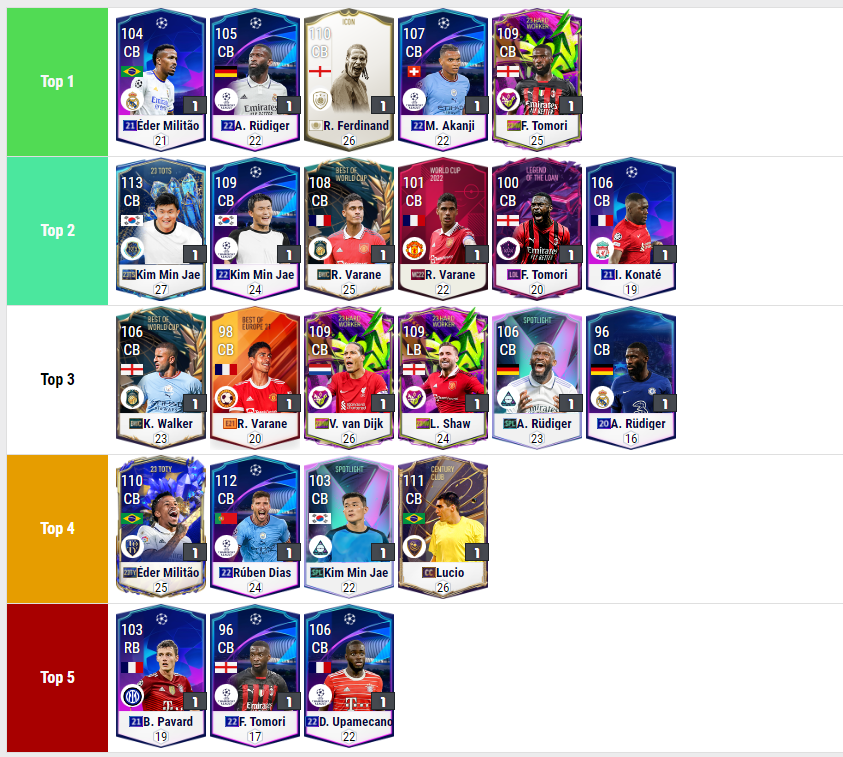 Ở vị trí top đầu có thể nhận thấy một cái tên đặc biệt đến từ mùa giải ICON là Rio Ferdinand, bất chấp mùa giải mới của trung vệ huyền thoại là Ferdinand DC thì mùa ICON vẫn được coi là có độ an toàn cao nhất. Bởi các mùa giải thông thường sẽ bị sa sút theo thời gian, trong khi mùa ICON sẽ có những chất riêng không lẫn đi đâu được.