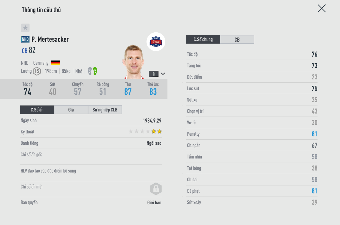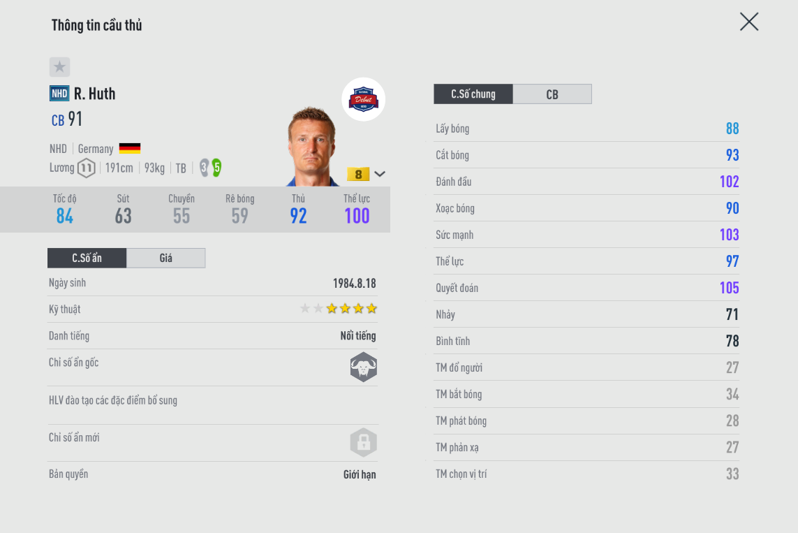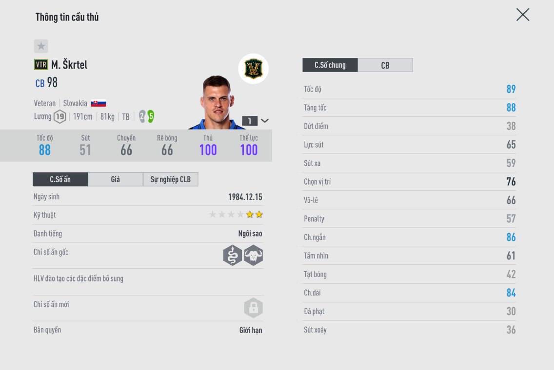 Việc gameplay 6.0 buff rất mạnh cho các trung vệ có nền tảng thể chất tốt giúp cho rất nhiều cái tên trở nên hữu dụng và chất lượng nâng cao lên rất nhiều, đặc biệt là những cầu thủ có sải chân dài trên 1m90. Dưới đây là những cái tên đáng tiếc nhất khi không chờ được gameplay 6.0 ra mắt. Đã vào giới hạn, và người chơi chỉ có thể sở hữu qua việc mua lại từ các nhà sưu tầm ( thương nhân )