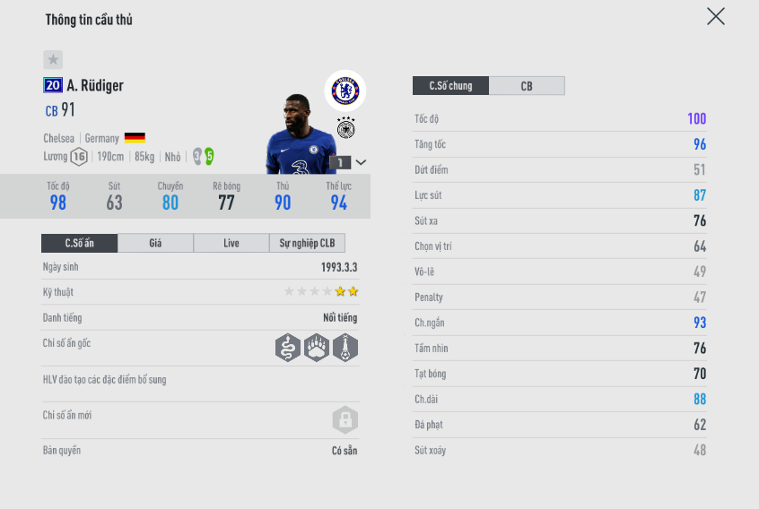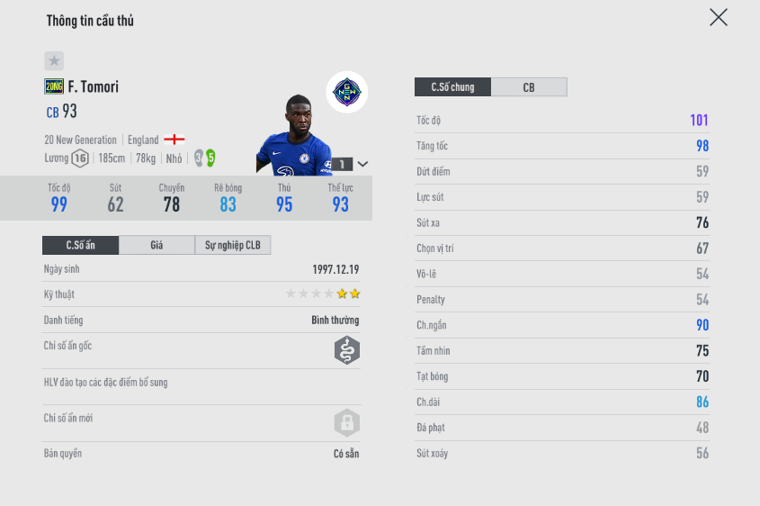 Cầu thủ đang được Chelsea cho Ac Milan mượn. Nhưng có lẽ sớm gọi về khi anh đang càng thể hiện mình hơi hay lên từng ngày. Một phiên bản tương tự Desailly nhưng mỏng cơm hơn một chút. Bù lại thì tốc độ và khả năng va chạm là cực tốt. Bạn thích đè E hay thích cắt bóng Tomori đều làm tốt. Thậm chí có những trận còn lấn lướt các bậc đàn anh