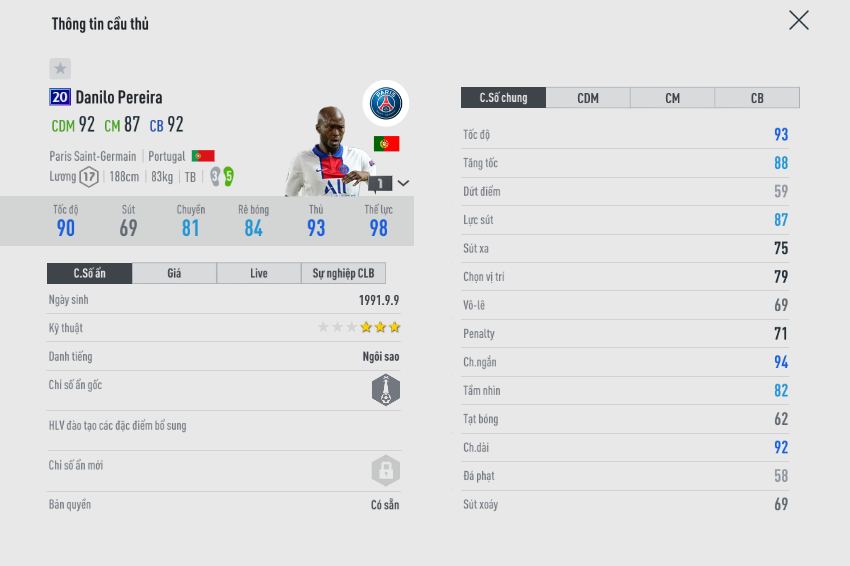 Cầu thủ này đã được Fo4vn review và đây là một trung vệ cực chất lượng về cả thể hình lẫn tốc độ. Rất phù hợp với meta hiện tại. Đặc biệt khi mà MC đã vượt qua Dortmund để có mặt tại bán kết C1 mùa giải năm nay. Đây là cái tên không thể thiếu nếu bạn xây dựng team Bồ Đào Nha