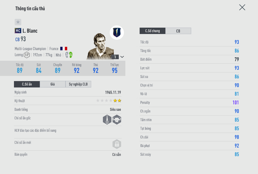 Chắc chắn là với chiều cao và thể hình của Blanc, huyền thoại này sẽ nghiệm nhiên chiếm một vị trí trong đội hình của Inter hiện tại. Bạn rất khó tìm được một cái tên khác có đầy đủ phẩm chất như huyền thoại người Pháp